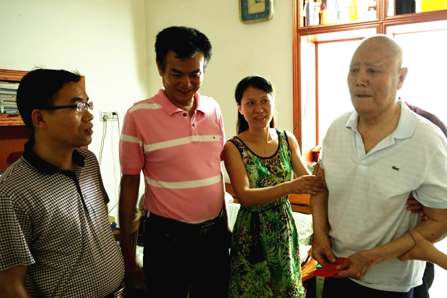 【概要描述】 “七一”建黨節(jié),公司黨委委員、紀檢書記兼工會主席王小華(左一)一行,代表公司黨委對公司離退休原領(lǐng)導干部進行走訪,并送上慰問金,...