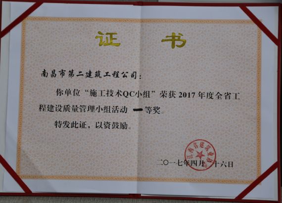 技術(shù)質(zhì)檢部貫徹公司質(zhì)量標(biāo)準(zhǔn)化管理精神,以切實(shí)提高工程質(zhì)量為目標(biāo),積極開展全面質(zhì)量管理技術(shù)攻關(guān)活動,所撰寫的《提高GC泡沫水泥保溫板外墻外保溫施工質(zhì)量 》QC課題成果,榮獲“2017年度全省工程建設(shè)優(yōu)秀質(zhì)量管理小組活動一等獎(jiǎng)”。