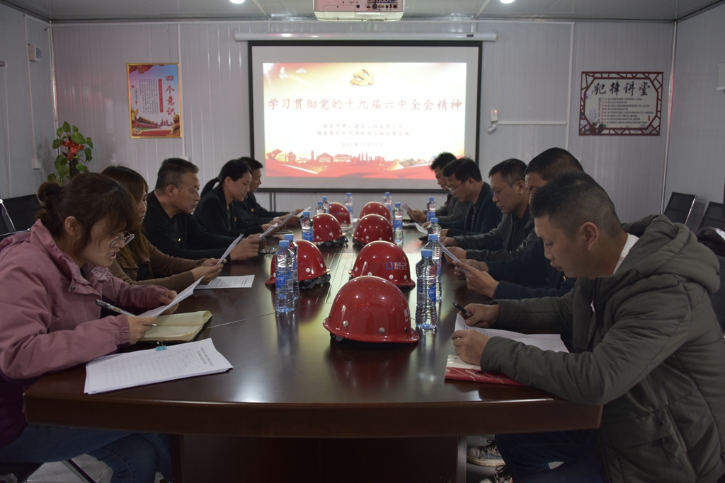 為把學(xué)習(xí)貫徹黨的第十九屆六中全會精神轉(zhuǎn)化為廣大職工以史為鑒、開創(chuàng)未來、埋頭苦干、勇毅前行的動力,公司黨委辦公室和第一黨支部根據(jù)黨委工作部署,于前一日率機關(guān)部分黨員下到市重點工程“南昌市繩金塔民俗風(fēng)情街”項目工地現(xiàn)場,與工地臨時黨支部一起開展黨的第十九屆六中全會精神宣貫工作,激發(fā)公司上下同心同德,以黨的第十九屆六中全會精神為指導(dǎo),為全面完成年度工作任務(wù)努力工作。